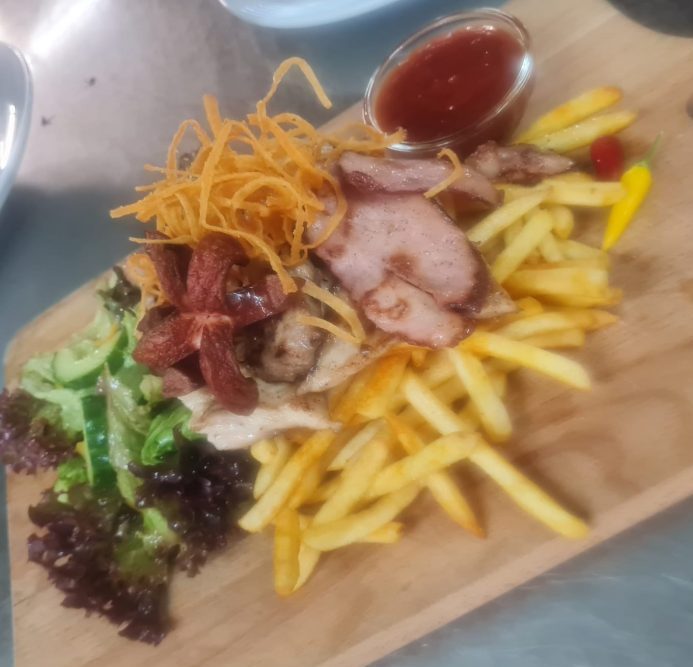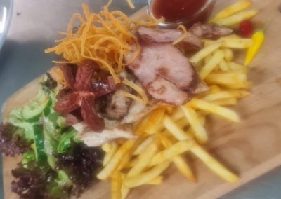 Grillteller, Cevapcici, Schweinerücken, Hühnermedallions, Speck und Grillwürstl, Pommes 1, 2, 6 |